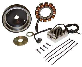 Features32 Amp charging system for 1970-1999 Big Twin models (except Twin Cam & EFI).System features performance rotor with rotor spacers integrated into housings.These systems are the perfect choice when building a bike from scratch or when upgrading your weaker charging system.The alternator rotors feature fully encased sets of magnets that have no way of working loose like OEM rotors are known to do. Instead of having just six long magnets like OEM rotors, these rotors have 12 short magnets to match the number of laminated windings found on the stators.All systems include a chrome plated regulator/rectifier. High Performance Charging Systems for Harley Davidson 1970-1999 Big Twin Models?
