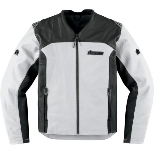 Icon Device Men's Leather Street Racing Motorcycle Jacket - White / Small